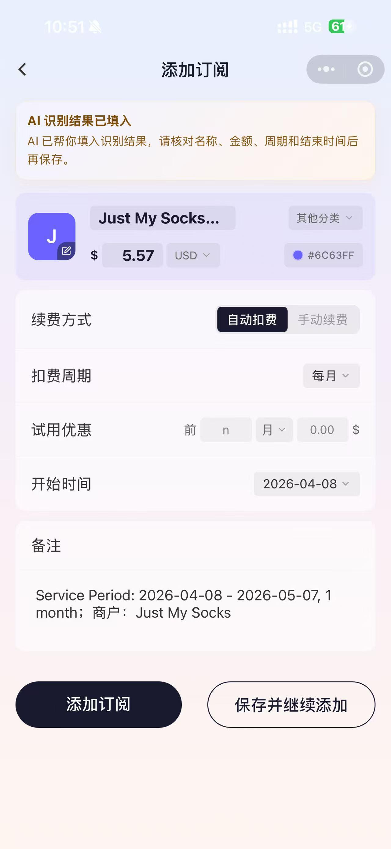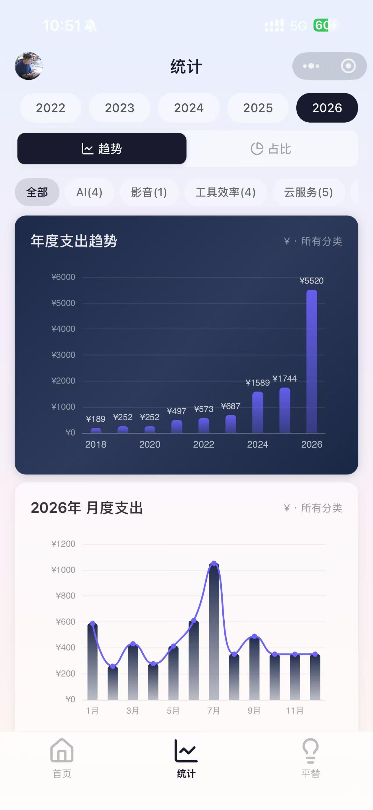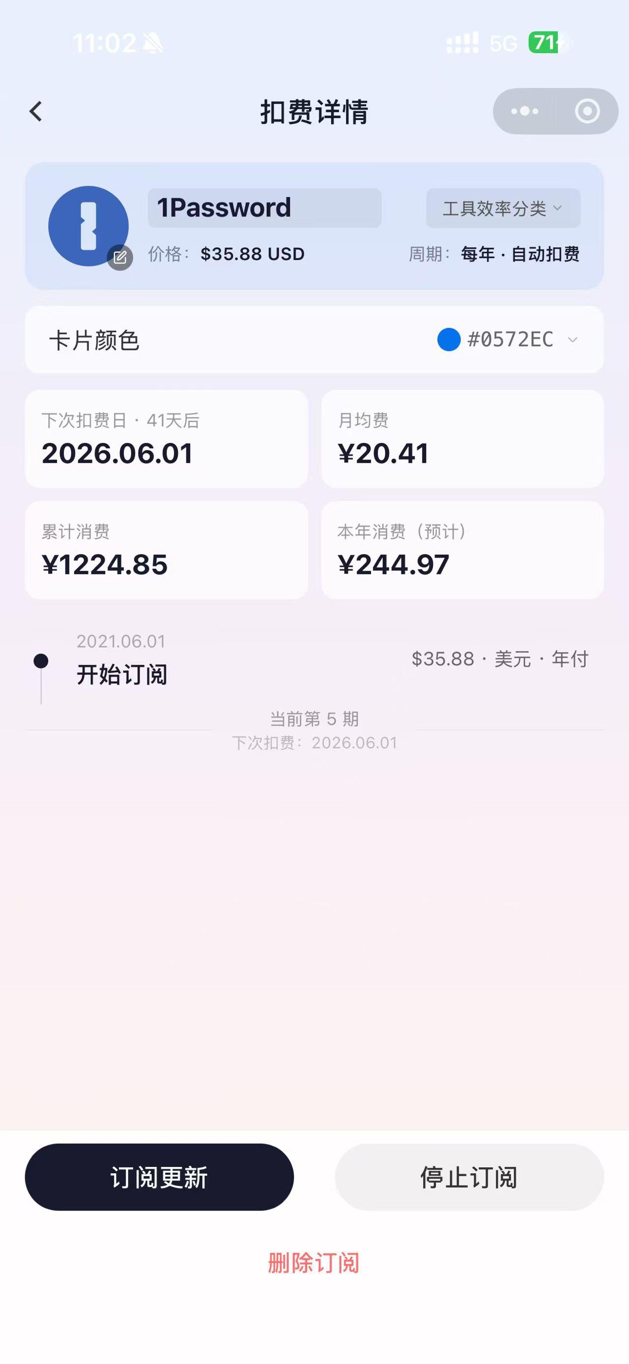 @donotquestion 记账成本高,也不直观,而且过于泛化。 订阅管理是记账下的一个垂直分类,更精细化的管理,当然记账也能满足需求,不过我更喜欢这种只处理订阅的场景。